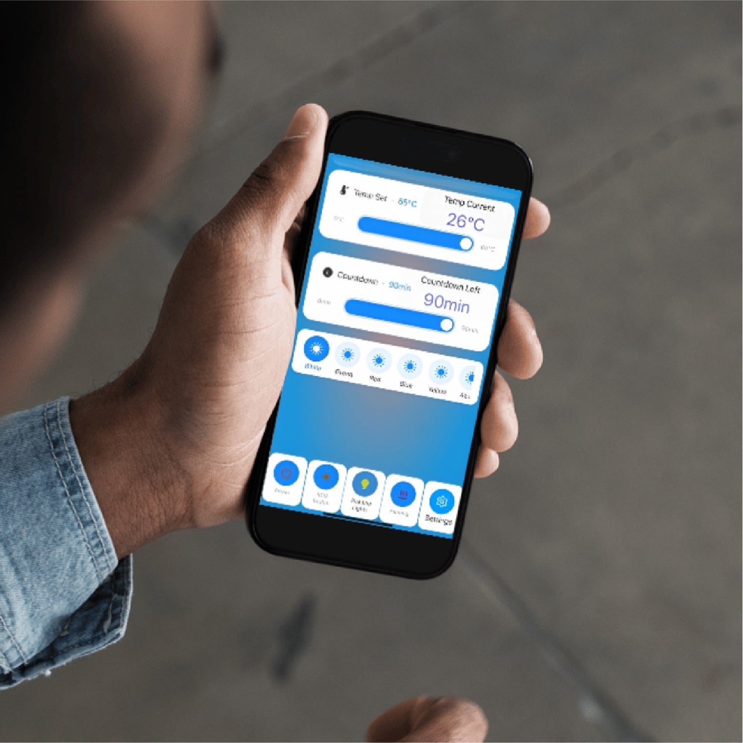Wi-Fi-fähige App-Steuerung zur Fernverwaltung von Temperatur, Beleuchtung und Sitzungen